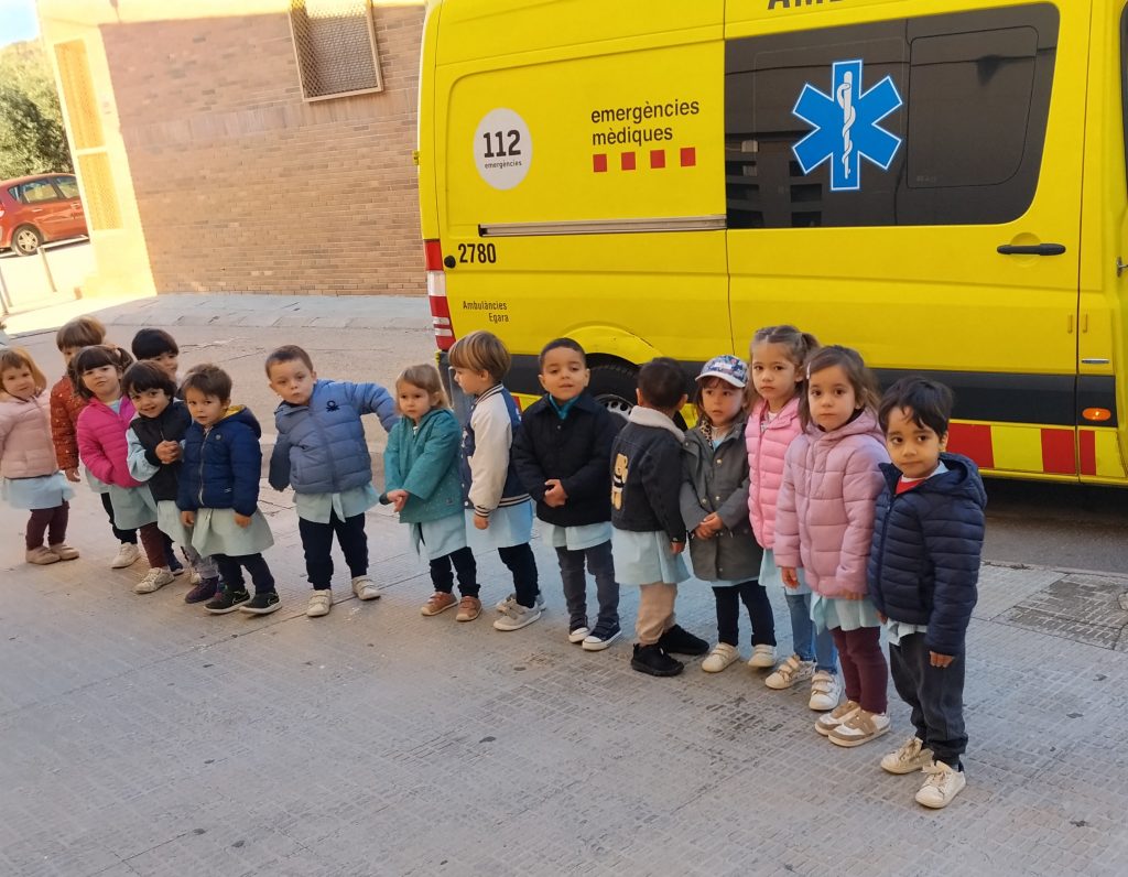 Avui, aprofitant que la tieta de la Cloe d’I4 ha vingut a explicar el funcionament de les ambulàncies a la seva classe, I3 hem aprofitat per veure com és una ambulància per dins i veure quins sons fan.