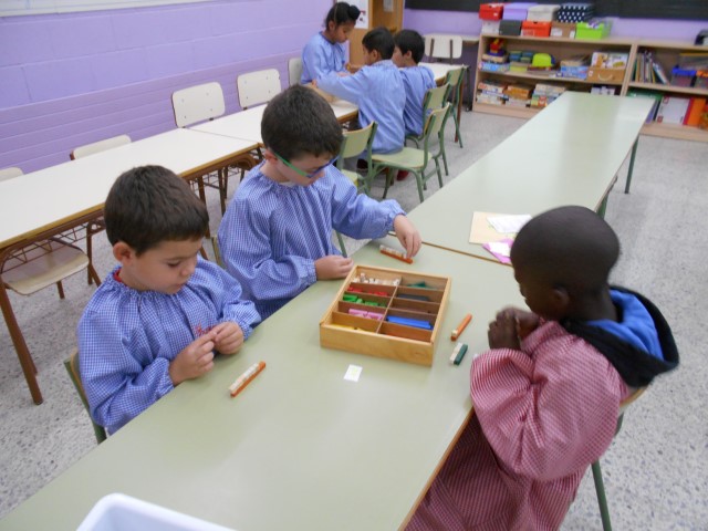 Els alumnes de 1r de cicle inicial s’inicien a la desena a través dels reglets i l’àbac.