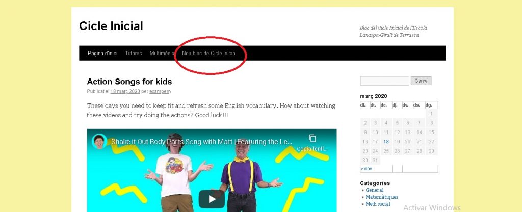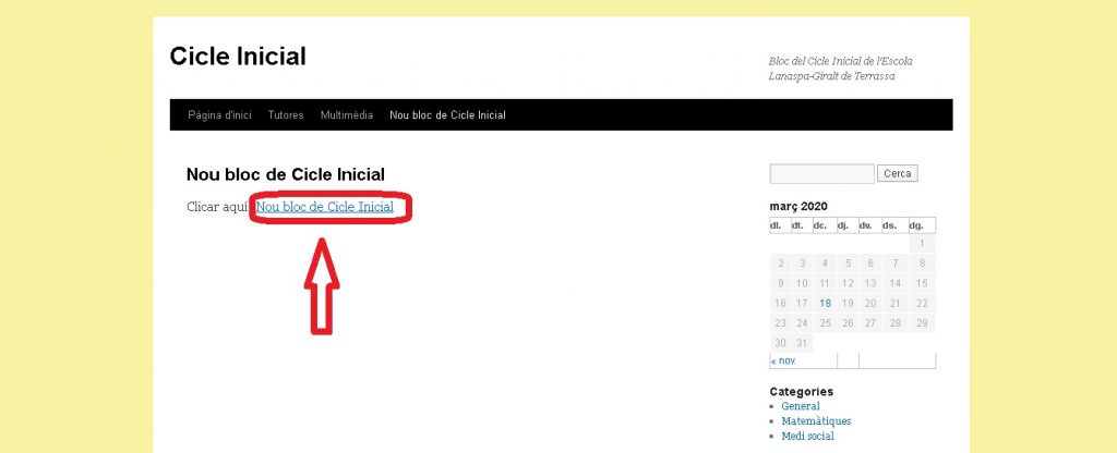 Per accedir al nou bloc, cal entrar en “Nou bloc de Cicle Inicial“, que es troba en el menú superior d’aquest bloc (veure la imatge 1).