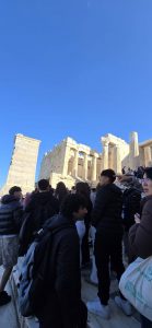 Acompanyats per una guia local, la Roula, vam explorar els barris del centre de la ciutat, la plaça Syntagma, el canvi de guàrdia davant del Parlament. També ens va guiar per l’Acròpolis, el Partenó i el Temple de Zeus, submergint-nos en la història clàssica. Vam observar les magnífiques Cariàtides, que més endavant vam veure els originals en el Museu de l’Acròpolis.