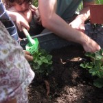 Després d’haver posat en marxa el compostador també s’ha engegat l’hort. Aquest divendres vam plantar maduixeres i enciams amb l’ajuda del Marc i la Sílvia. Vam continuar fent el compostatge i vam descobrir que ja hi havia els primers bitxets…