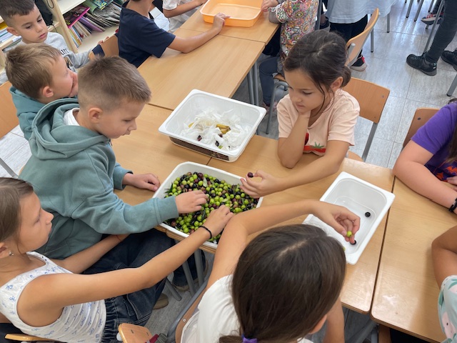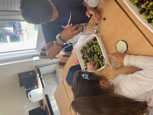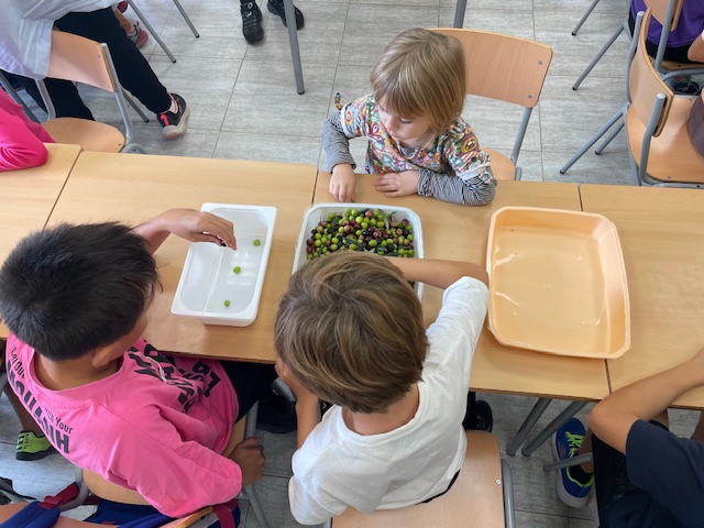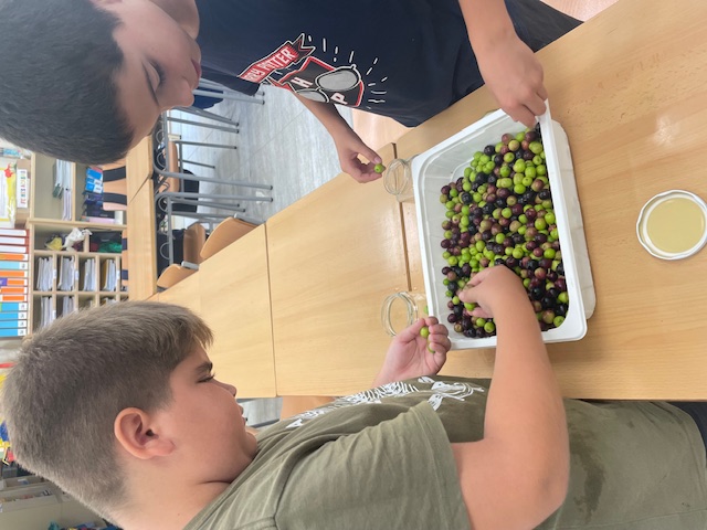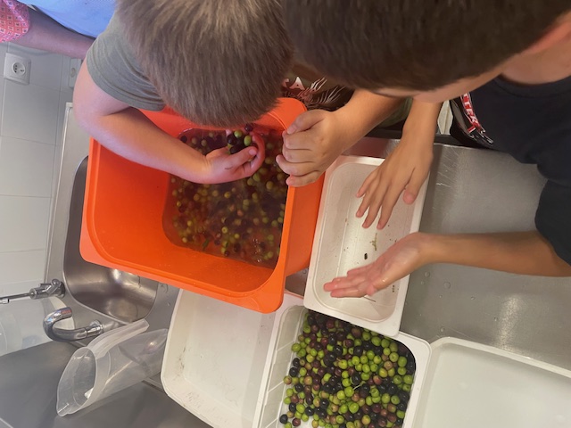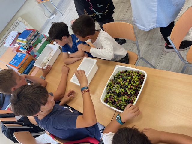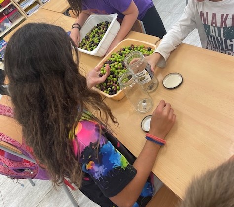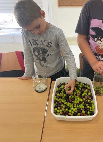Dijous vam sortir a collir les olives del poble. Després, quan vam arribar a l’escola les vam rentar, vam preparar aigua amb sal, vam collir el timó de la nostra escola i les vam posar en pots de vidre. Ara només ens queda esperar 4 mesos per saber com ens han quedat de bones!