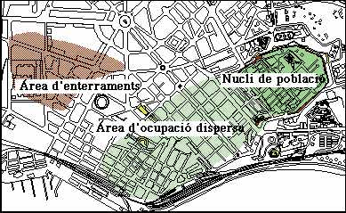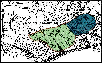 La Tarraco republicana i el, teòric, recinte enmurallat.