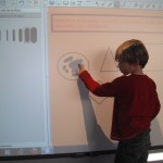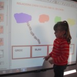Així doncs , hem traslladat als nens a l’aula de 5è.una aula ample i espaiosa i que està dotada amb una pissarra digital .