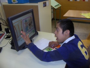 Aquesta setmana hem treballat “el conte dels 3 porquets”. Fem servir la pantalla tàctil com a comunicador. Quan toquem les imatges sona la veu que prèviament hem gravat i estimula l’atenció auditiva i la repetició oral.