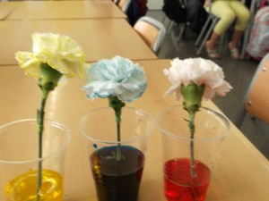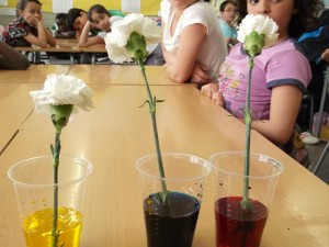 Els nens i nenes de 3r estem treballant el tema de les plantes i hem fet un exper¡ment amb un clavell amb el que hem pogut veure com la tija absorveix l’aigua.