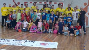 Hem tingut la sort de poder veure un entrenament del Barça de handbol. Ens hem fotos amb ells i ens han signat autògrafs a les nostres samarretes.