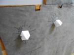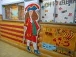 El tema de 1r ESO B ha estat: El món en guerra. Han treballat quins eren els bàndols i els països bel•ligerants i les armes de foc que s’utilitzaven al segle XVIII. Han fet de la seva aula una gran fortalesa, amb muralles, canons, fusells i soldats.