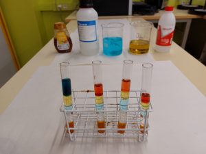 33Aquests dies estem experimentant amb la densitat de diferents líquids immiscibles i estem obtenint unes fotos molt boniques.