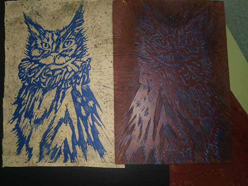 Aquesta tècnica consisteix en agafar una planxa i amb una eina anomenada gúbies treballes la planxa deixant en relleu el dibuix que vols que es quedi al paper.