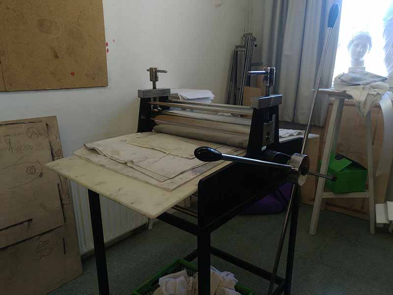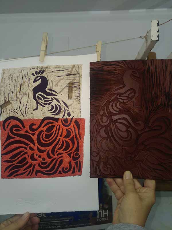 Seguidament es passa un rotllo amb tinta a l’oli. Per últim fiques un paper humit sobre la planxa i la passes per la màquina indicada i queda tot imprès sobre el paper.