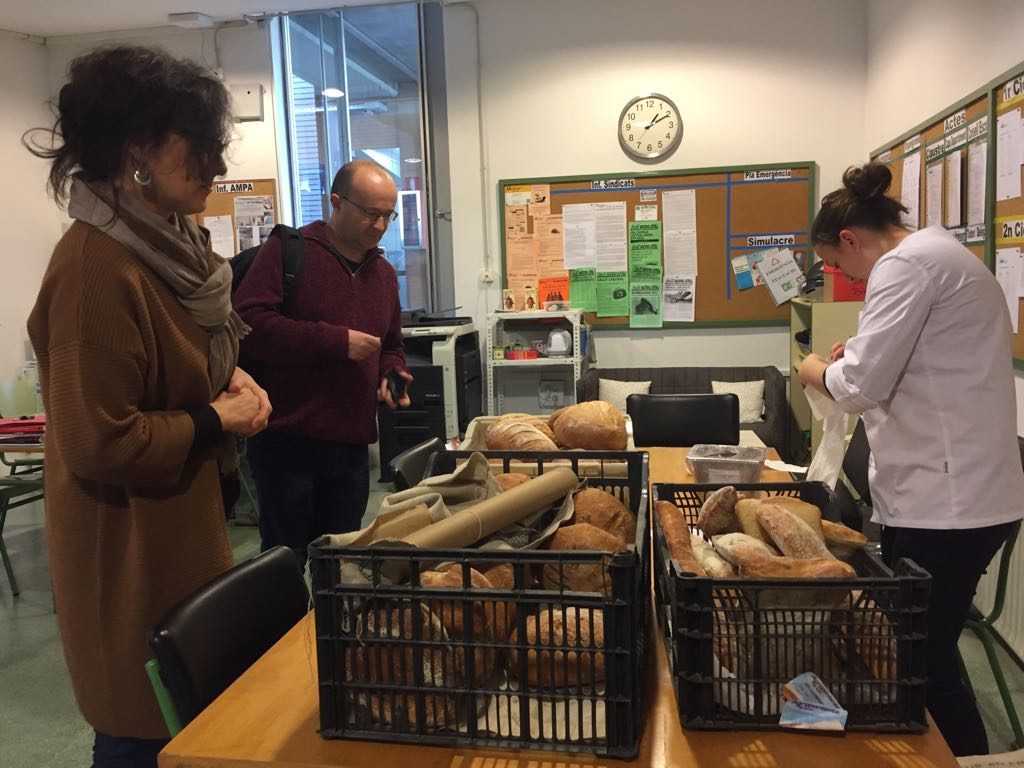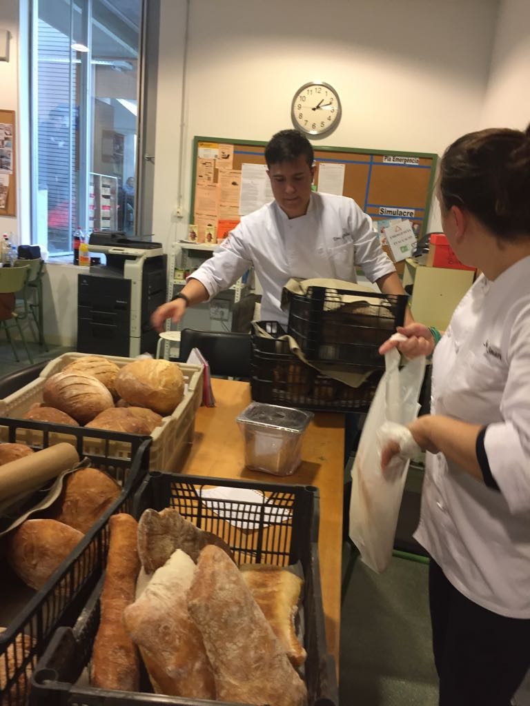 Cada dilluns els alumnes Sophie Smart, Brandon Benitez i Toni Garcia de 1er de panaderia fan pa al matí i sobre les 13:00 van a la sala de professors  i el venen. La setmana que vam anar nosaltres a fer-los l’entrevista venien pa de xapata, pa integral i pa de pagès. El preu al qual els venien era d’1€ la peça.