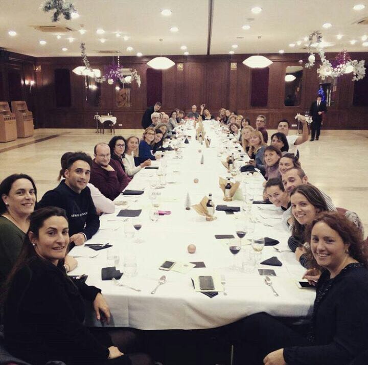 Aquest dinar es va fer després de l’institut a l’Hotel Olympic, a la sala de teatre, amb les taules molt ben arreglades amb decoració relacionada amb el Nadal.