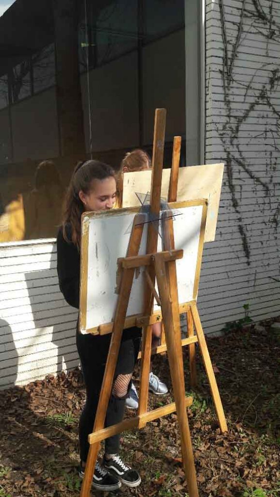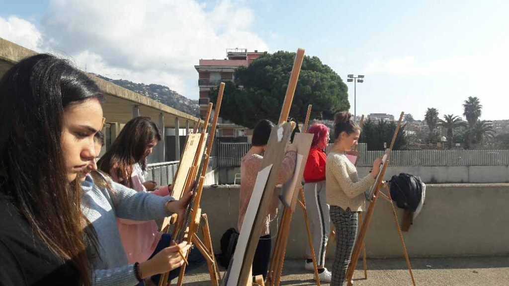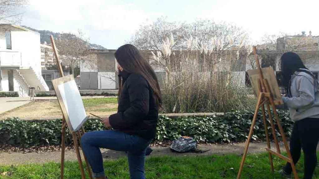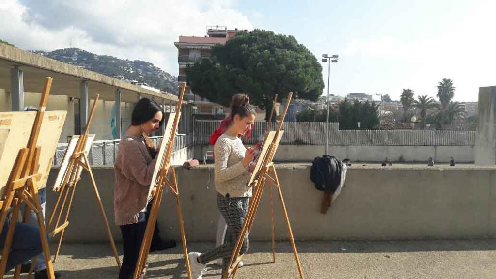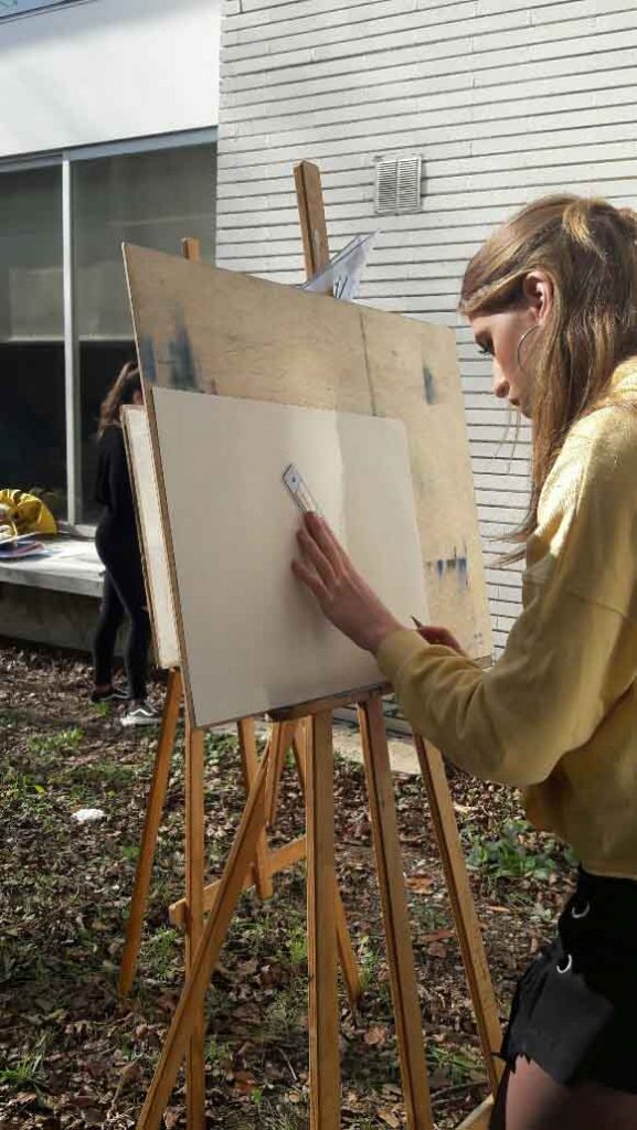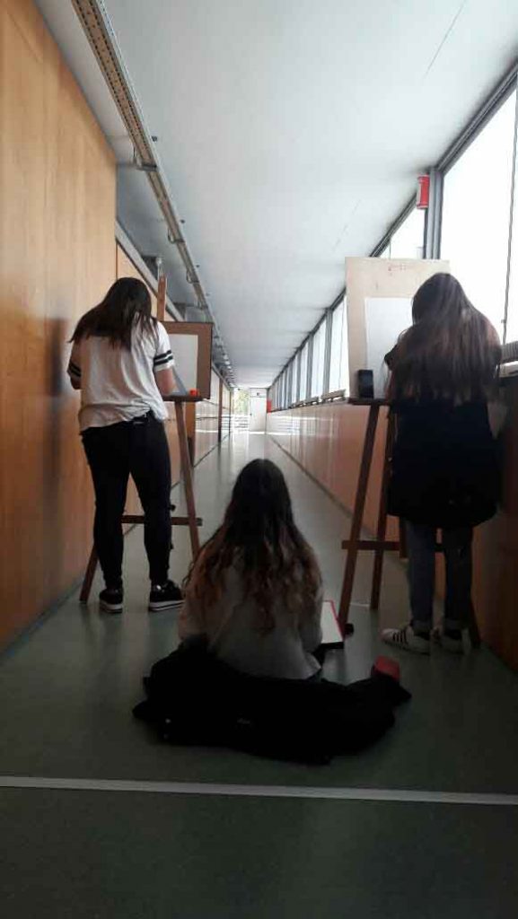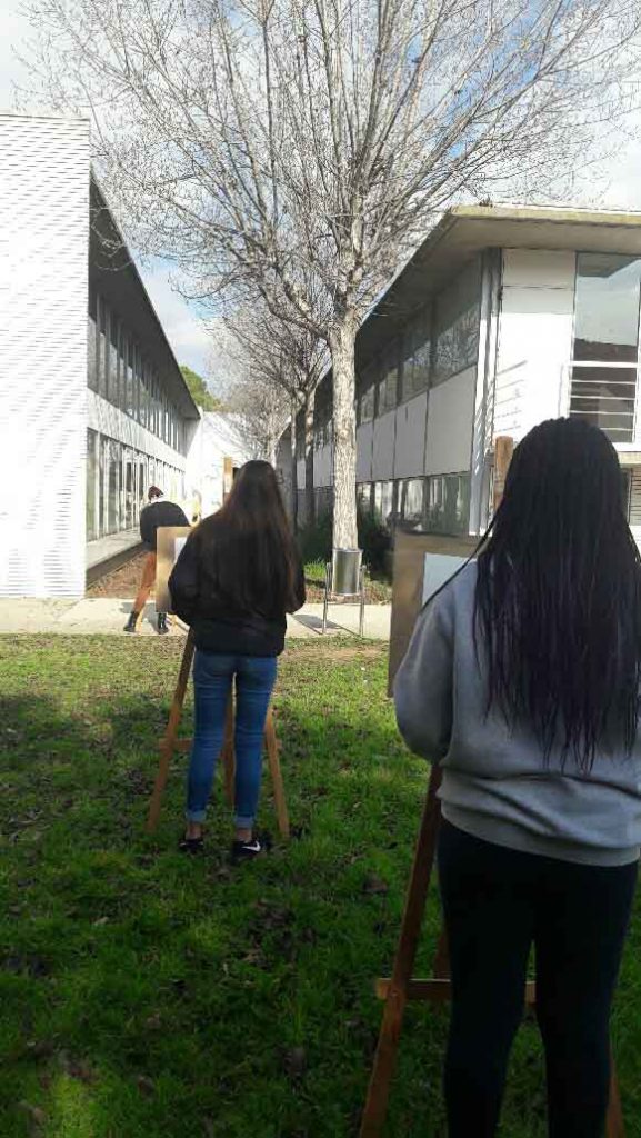 Els alumnes de 1r de batxillerat artístic estan dibuixant la perspectiva cònica del nostre institut a l’assignatura de dibuix artístic.