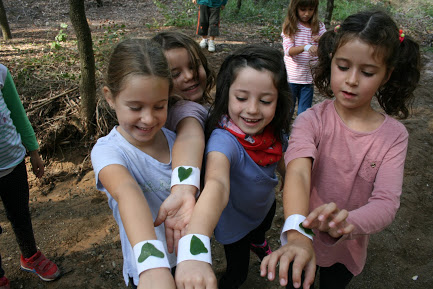 Vam sortir de l’escola a l’hora del pati i ens vam asseure a esmorzar tots junts al bosc, després ens vam posar unes polseres adhesives i vam començar explorar el bosc, vam trobar moltes coses, fulles, troncs, pinyes, bolets, cucs, formigues…