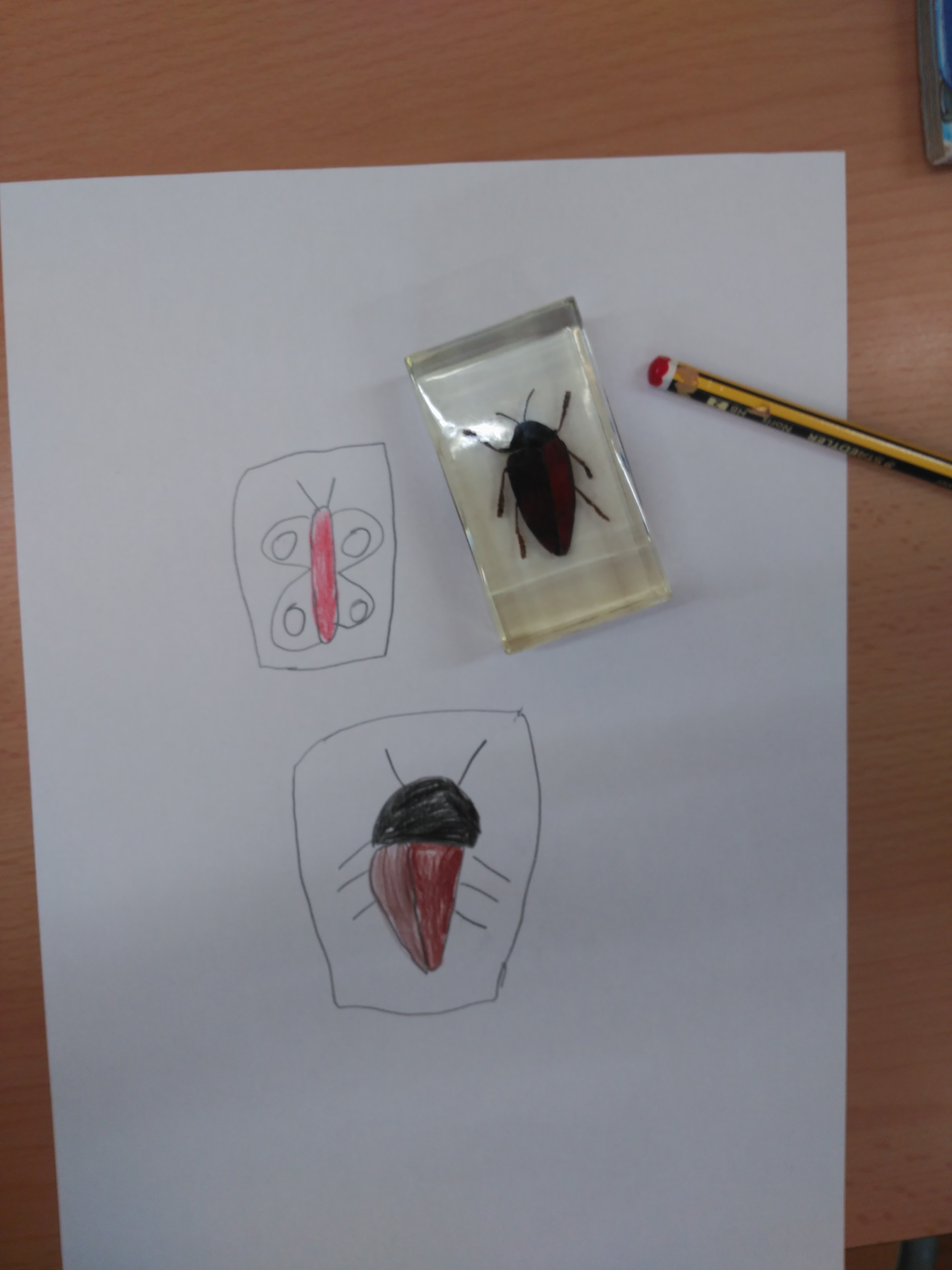 Per finalitzar el tema dels éssers vius de medi la Clara i la Cristina ens van portar uns bitxos que vam poder observar molt bé! Ens van agradar molt i vam decidir dibuixar-los i pintar-los!