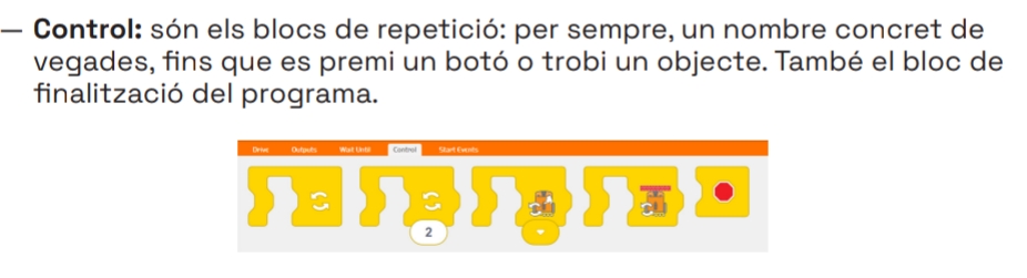- Repàs: Recordar els blocs de moviment i els blocs d’inici (“al tocar”).