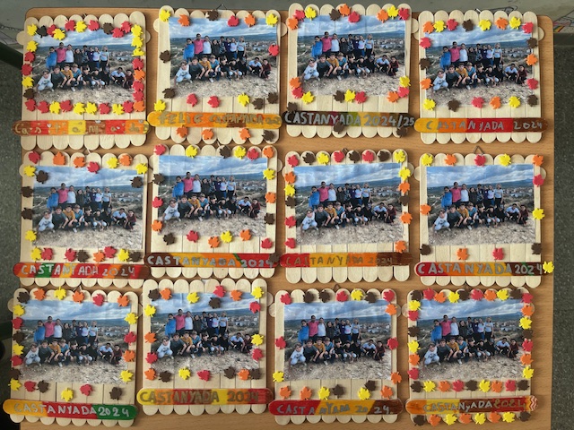 Al matí hem fet una manualitat amb una foto de grup que ens vam fer el dia que vam sortir a treballar el LandArt. A continuació hem fet el joc de passa paraula relacionat amb la temàtica de Halloween. Després, ens hem menjat els esmorzars boníssims temàtics de tardor. Tot seguit, hem baixat una estoneta al pati i al pujar hem fet un scape room de la castalnyada. Per sort, tots els grups hem aconseguit les claus per poder sortir de la classe i anar a dinar.