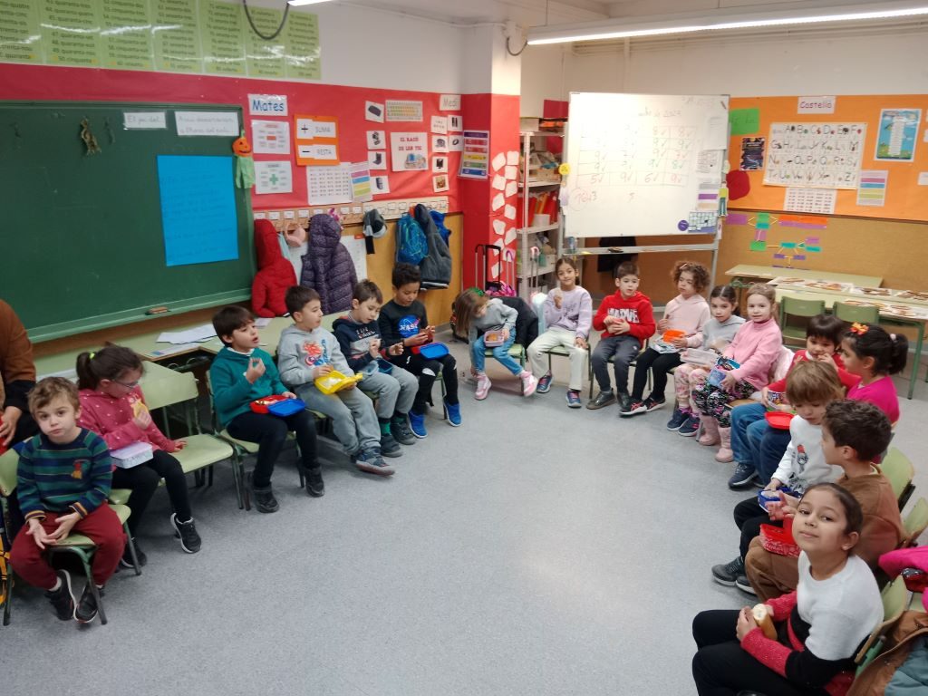 Avui hem celebrat l’últim dia del trimestre amb un esmorzar especial: hem cantat cançons al pati i també hem portat aliments típics d’aquestes festes i hem gaudit d’aquest esmorzar diferent a la classe.