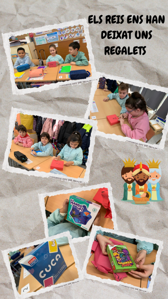 En el moment que ja estàvem preparats/des ens hem fixat que a la pissarra teníem 3 regalets que ens havien deixat els Reixos.