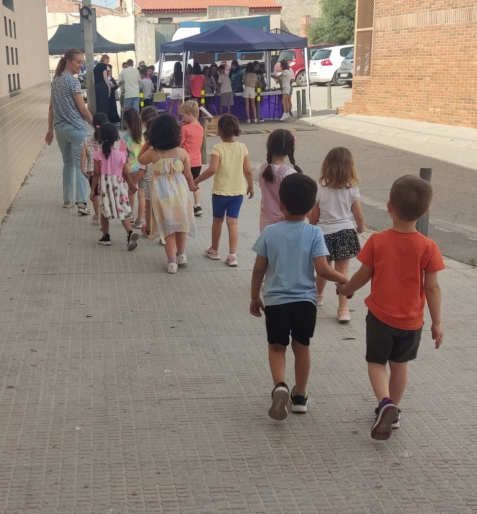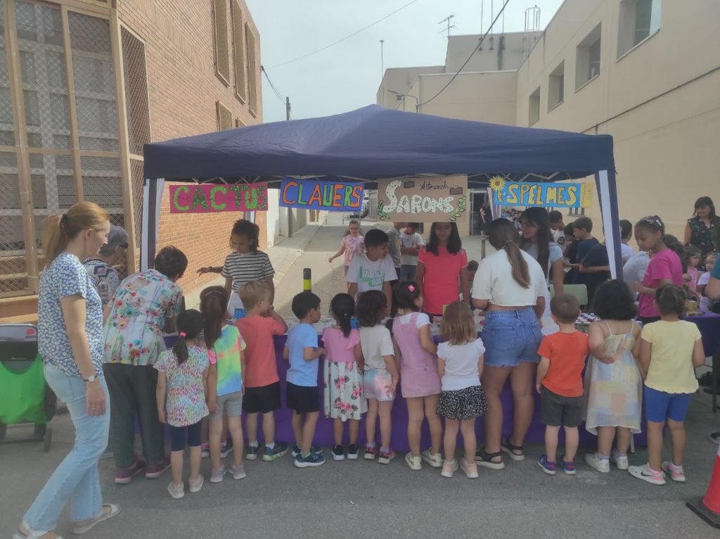 Avui hem sortit a veure la parada que han fet els i les alumnes de cicle superior de l’escola, amb les manualitats que han fet ells i elles: sabó, clauers, espelmes…