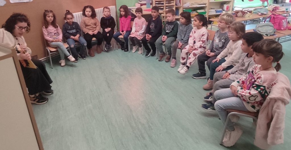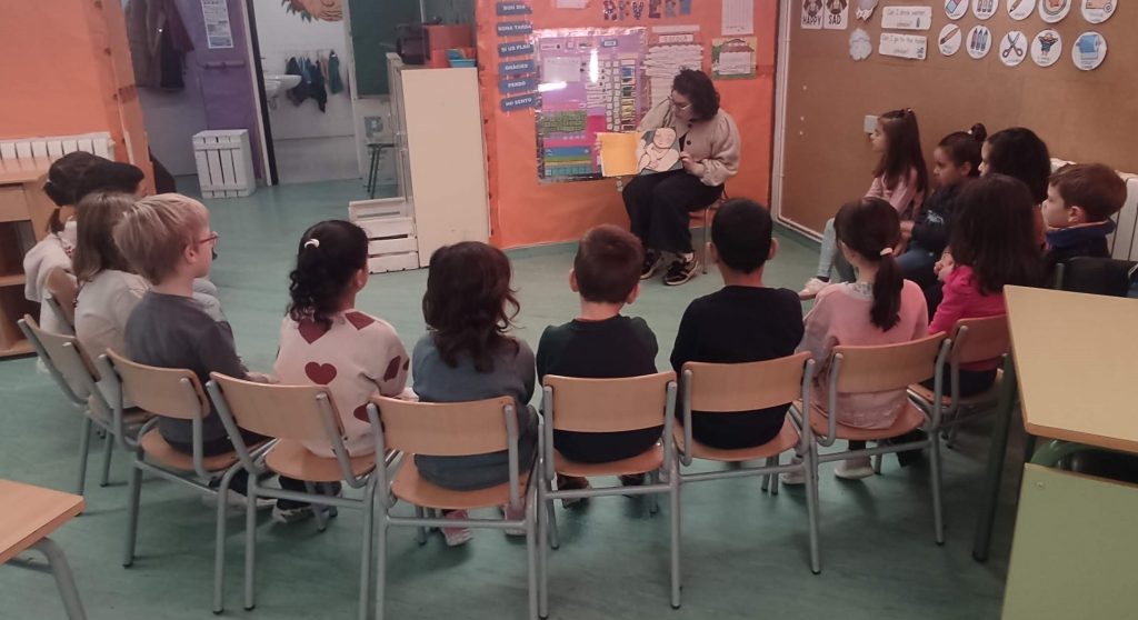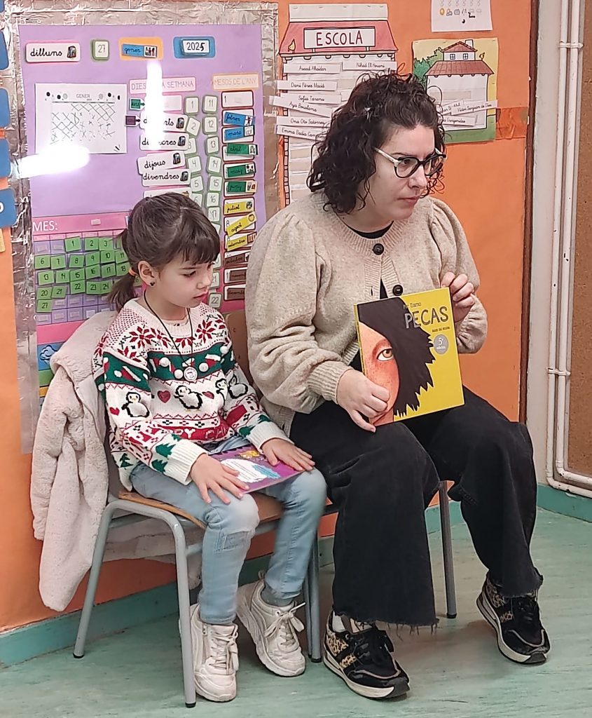Avui, la mare de la Núria, ens ha vingut a explicar dos contes: un d’una nena anomenada PECAS, amb castellà i un de L’ESCOLA DE MONSTRES.
