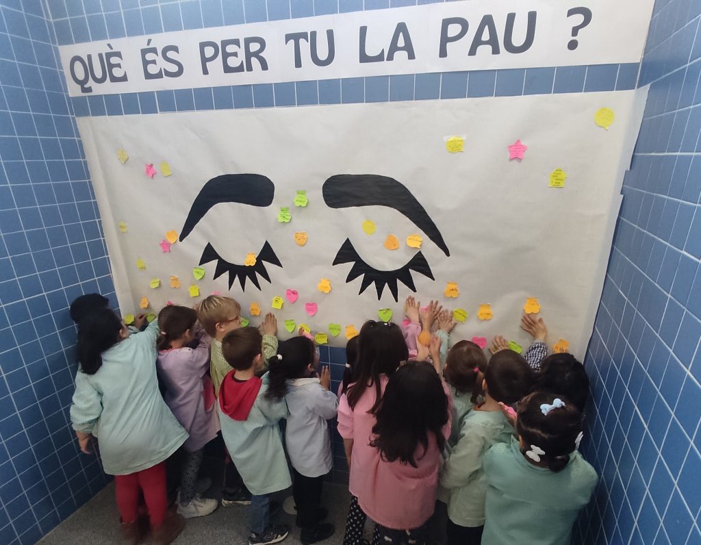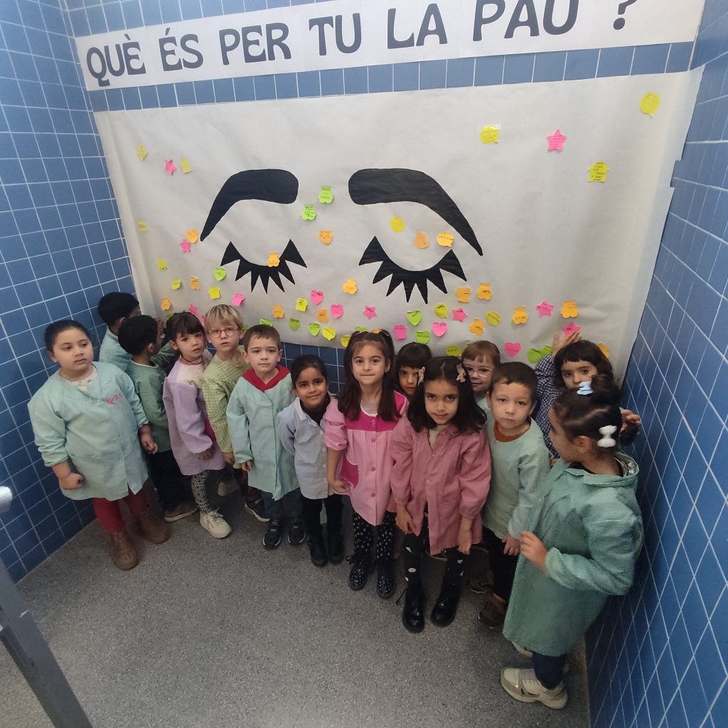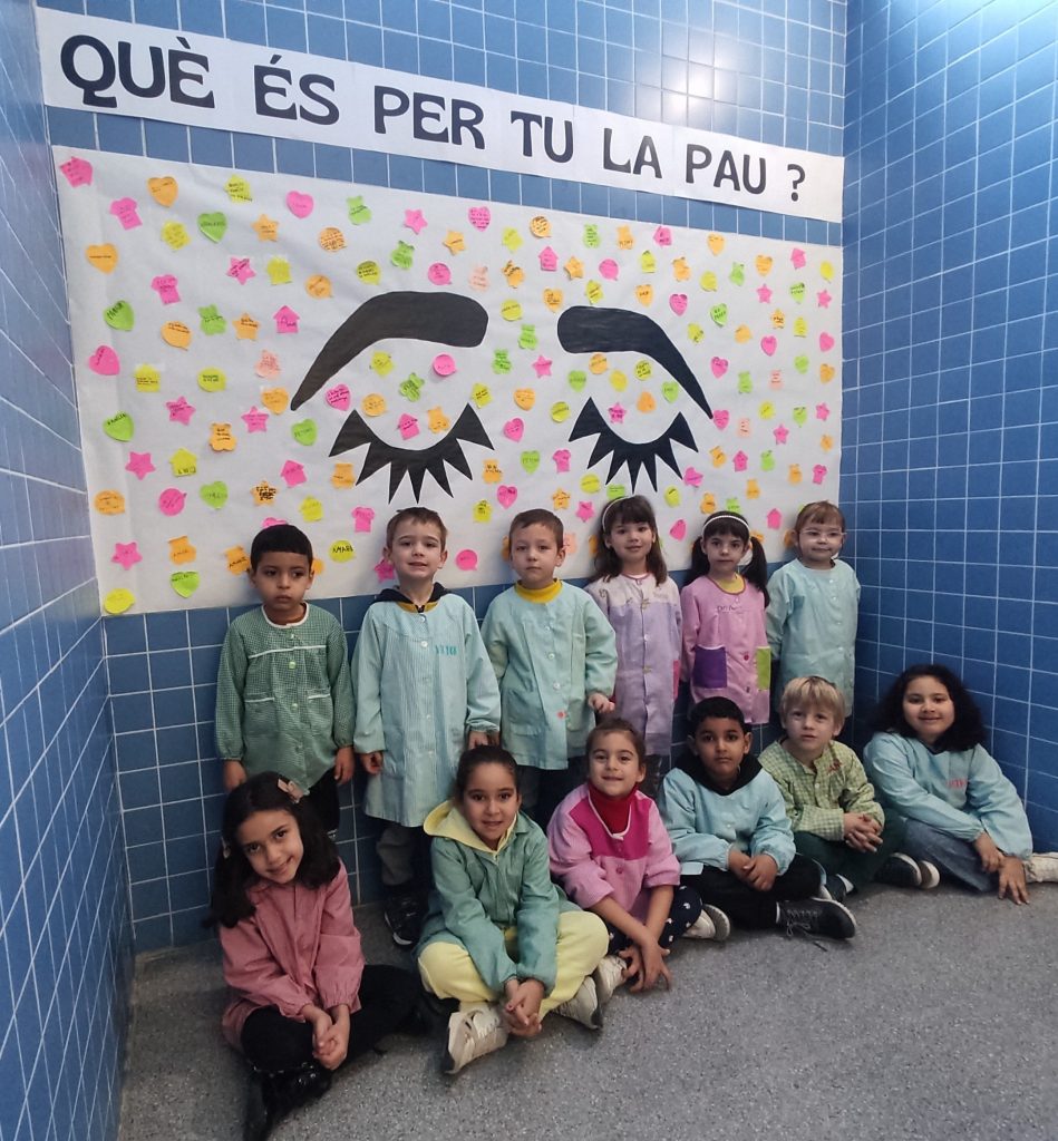 Avui és el dia de la Pau, a l’escola hem preparat un mural amb tots els infants que representa que és per a ells i elles la Pau.
