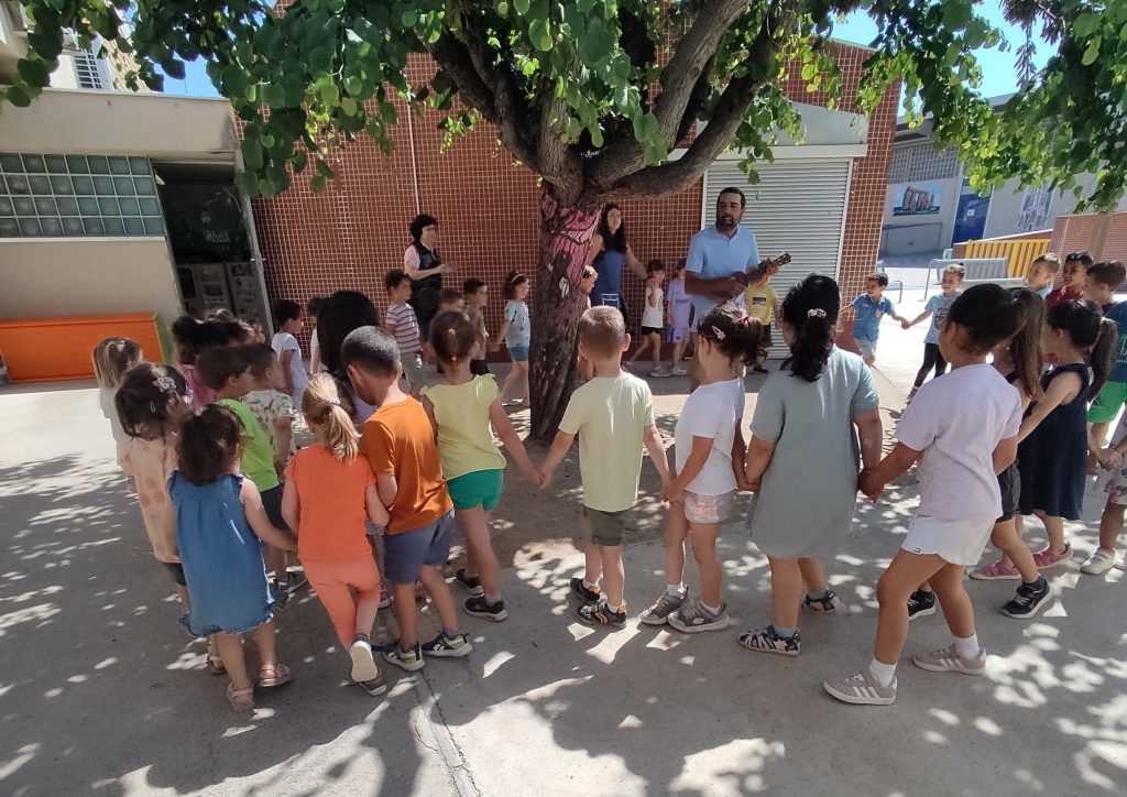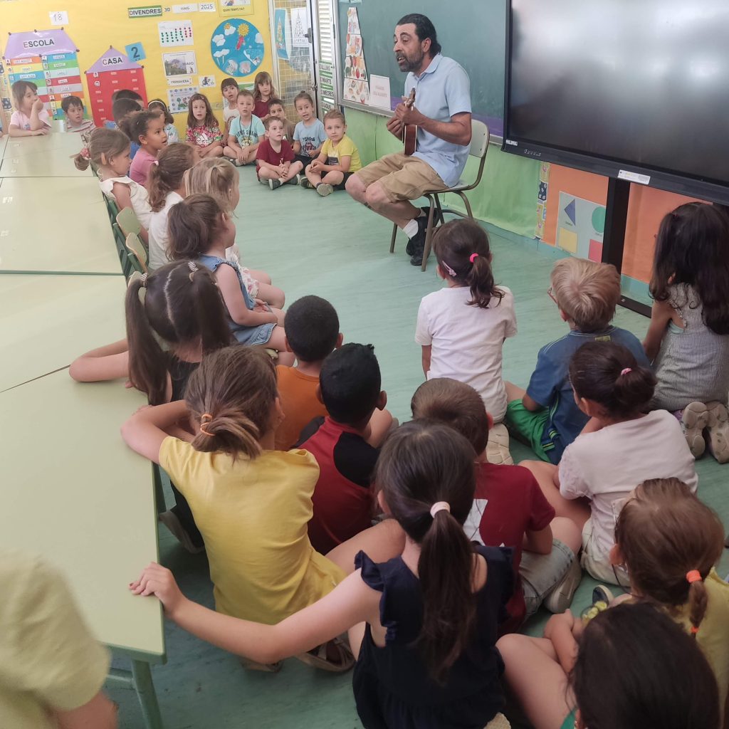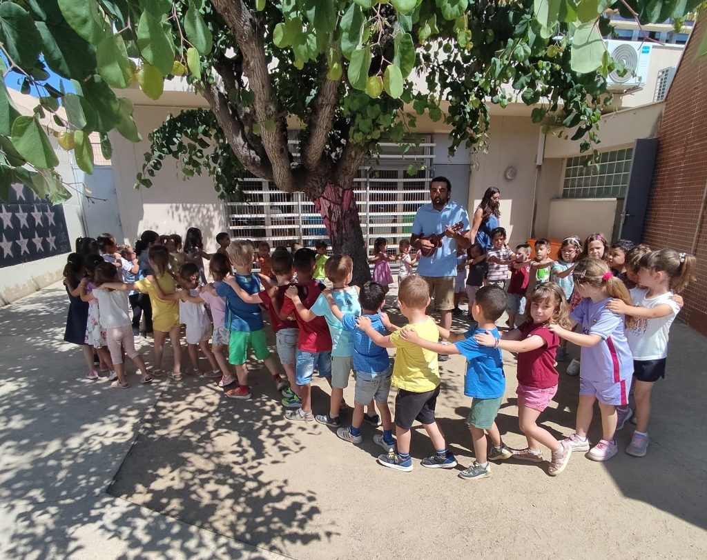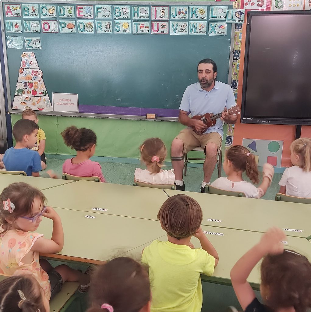 Ens ha fet un concert d’Ukulele, on hem pogut cantar cançons com “El Sol Solet”, “La lluna i la pruna”, fer coreografies de cançons com “Mireu allà dalt, un elefant…” i finalment hem sortit a ballar danses divertides al pati, on ens ho hem passat molt bé.