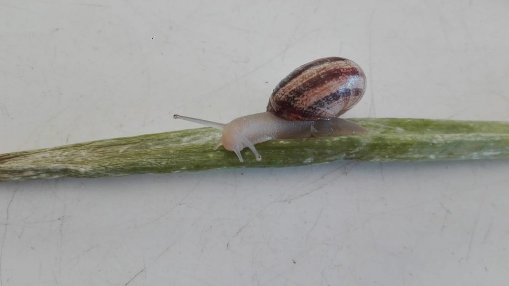 Cada setmana, observem els nostres caragols: anomenem les seves parts, els posem unes gotetes d’aigua i els hi donem menjar.