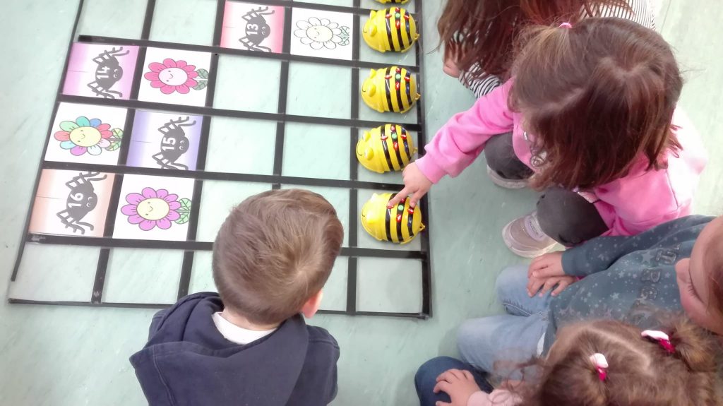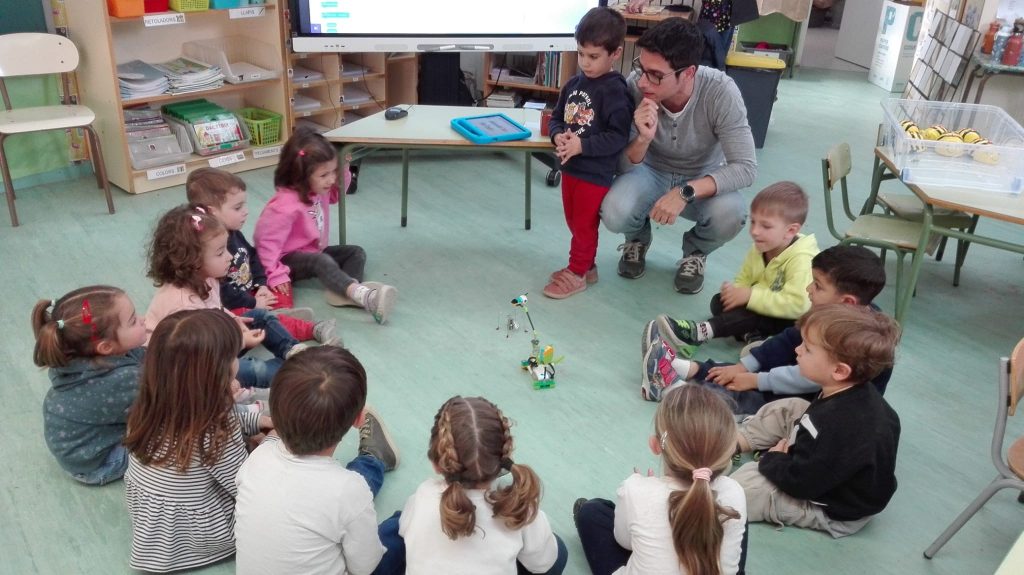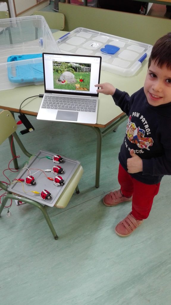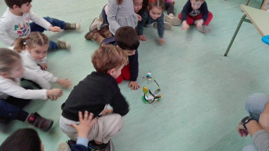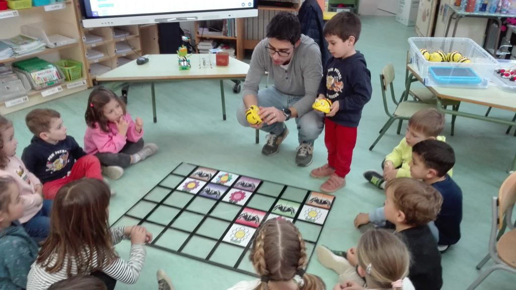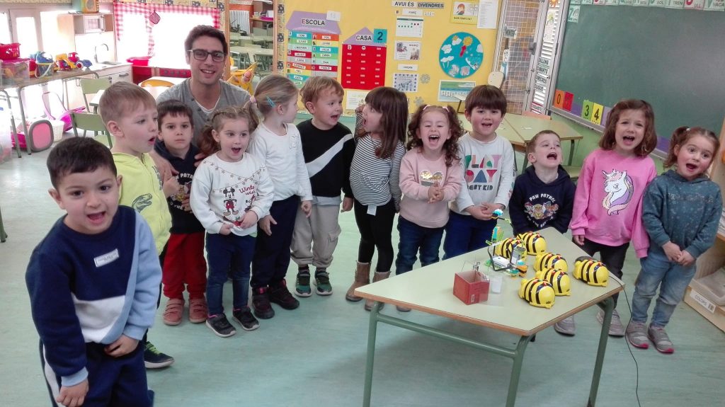 L’aranya caminava i saltava, una abelleta petita que volava quan algú se li apropava i unes abelles grans, les beebots, que caminaven damunt d’un tauler. Anaven endavant o endarrere, segons les ordres que se’ls hi donava. Tots les vam fer caminar!