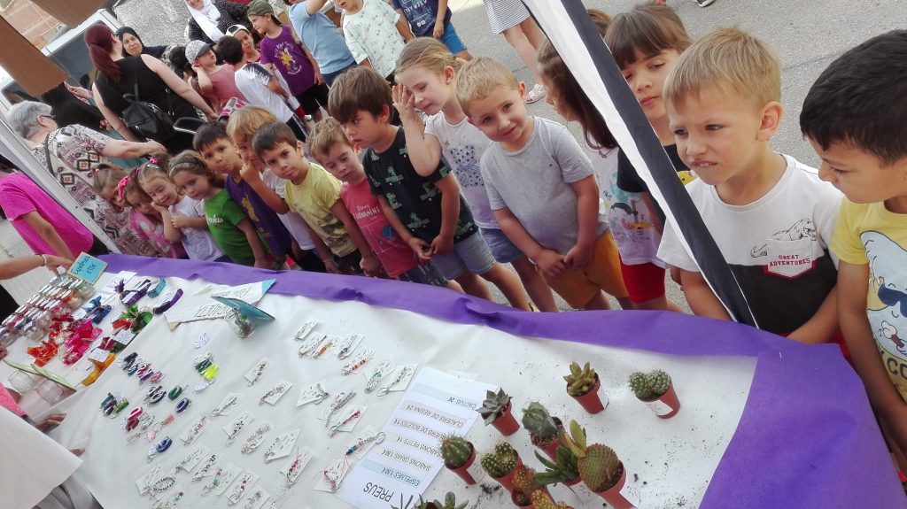 Avui hem sortit a veure la parada que han fet els i les alumnes de cicle superior de l’escola, amb les manualitats que han fet ells i elles: sabó, clauers, espelmes…