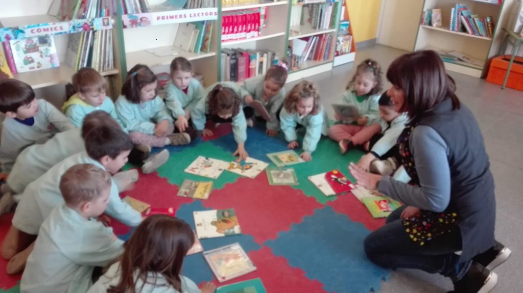 Cada setmana durant el curs, hem pujat a la Biblioteca de l’Escola que està al segon pis. Allí, hem pogut buscar un conte adequat per la nostra edat que ens agradés i emportar-nos-el cap a casa per llegir-lo amb la nostra família.