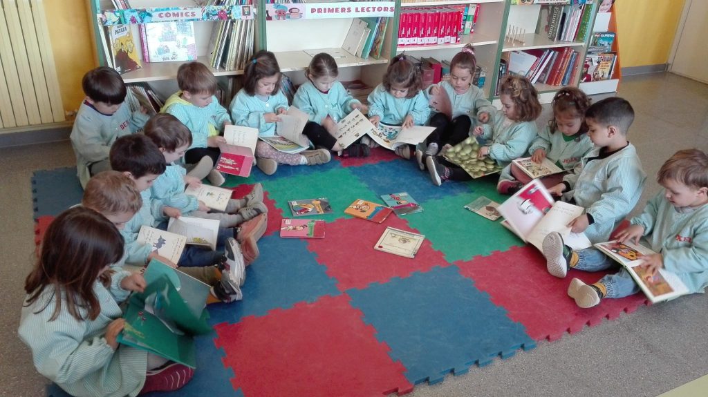 Cada setmana durant el curs, hem pujat a la Biblioteca de l’Escola que està al segon pis. Allí, hem pogut buscar un conte adequat per la nostra edat que ens agradés i emportar-nos-el cap a casa per llegir-lo amb la nostra família.