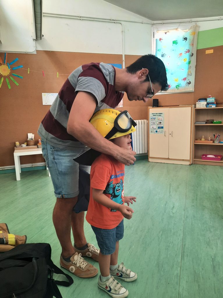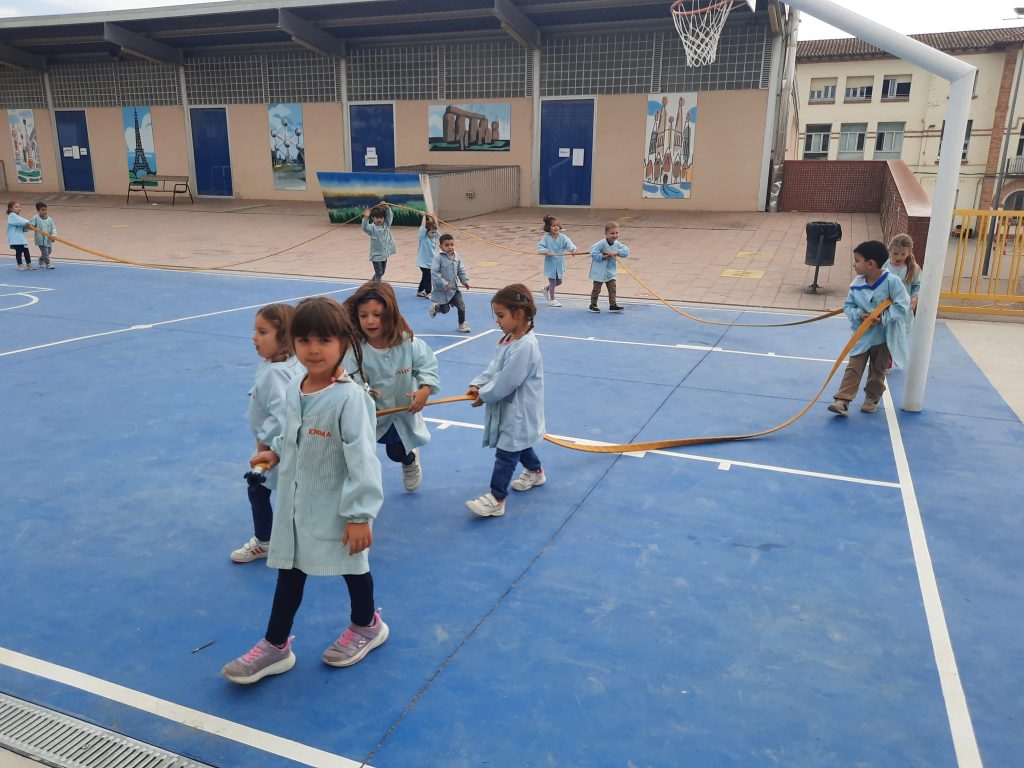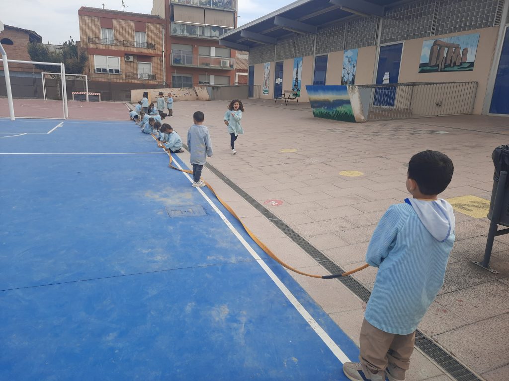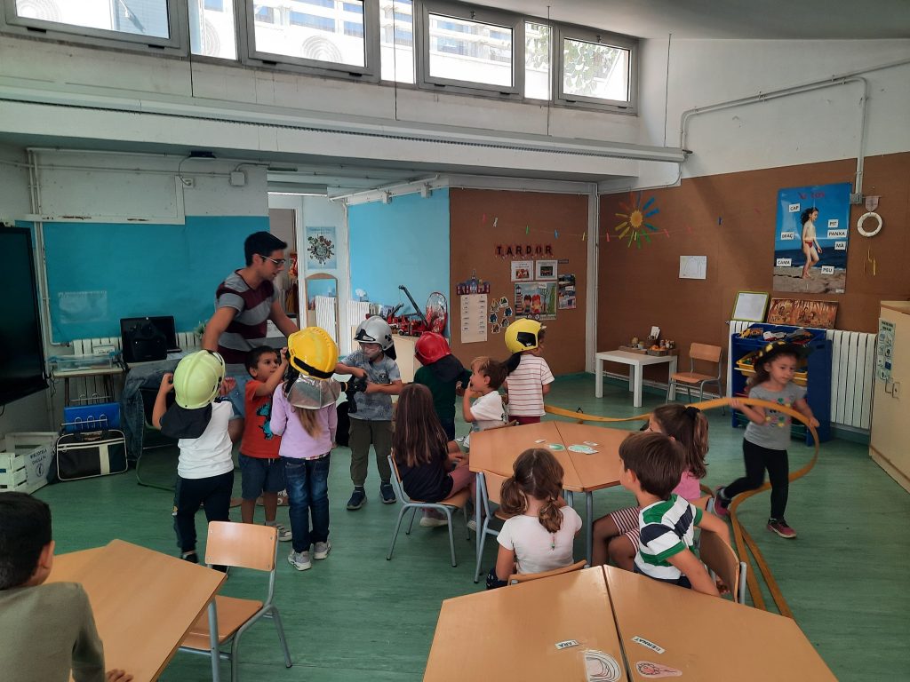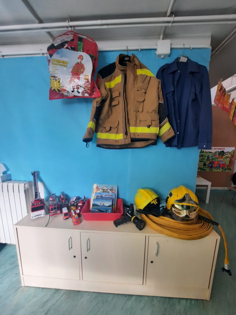 Durant el recorregut per aquest apassionant ofici, hem rebut la visita de les nostres famílies a l’aula i, gràcies a la seva col·laboració, hem aprés moltíssimes coses i hem pogut crear i gaudir d’un racó dels bombers amb imatges, contes, disfresses, tot un parc de bombers amb cotxes i camions escala i part de l’equipament dels bomber de veritat: 2 cascs, 1 jaqueta, 1 camisa, 1 llança i 1 mànega. Aquesta última, vam poder mesurar-la i sabem que fa 1 camp de bàsquet i mig del nostre pati de l’escola!