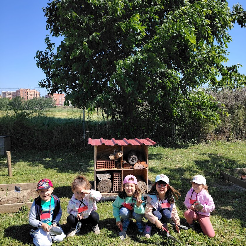 Després vam anar a veure els horts i vam regar un tros on hi han bledes. També vam buscar insectes i altres animalons amb una lupa. Tenen dos hotels d’insectes a la vora.