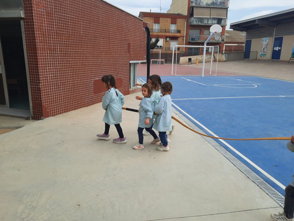 Durant el recorregut per aquest apassionant ofici, hem rebut la visita de les nostres famílies a l’aula i, gràcies a la seva col·laboració, hem aprés moltíssimes coses i hem pogut crear i gaudir d’un racó dels bombers amb imatges, contes, disfresses, tot un parc de bombers amb cotxes i camions escala i part de l’equipament dels bomber de veritat: 2 cascs, 1 jaqueta, 1 camisa, 1 llança i 1 mànega. Aquesta última, vam poder mesurar-la i sabem que fa 1 camp de bàsquet i mig del nostre pati de l’escola!