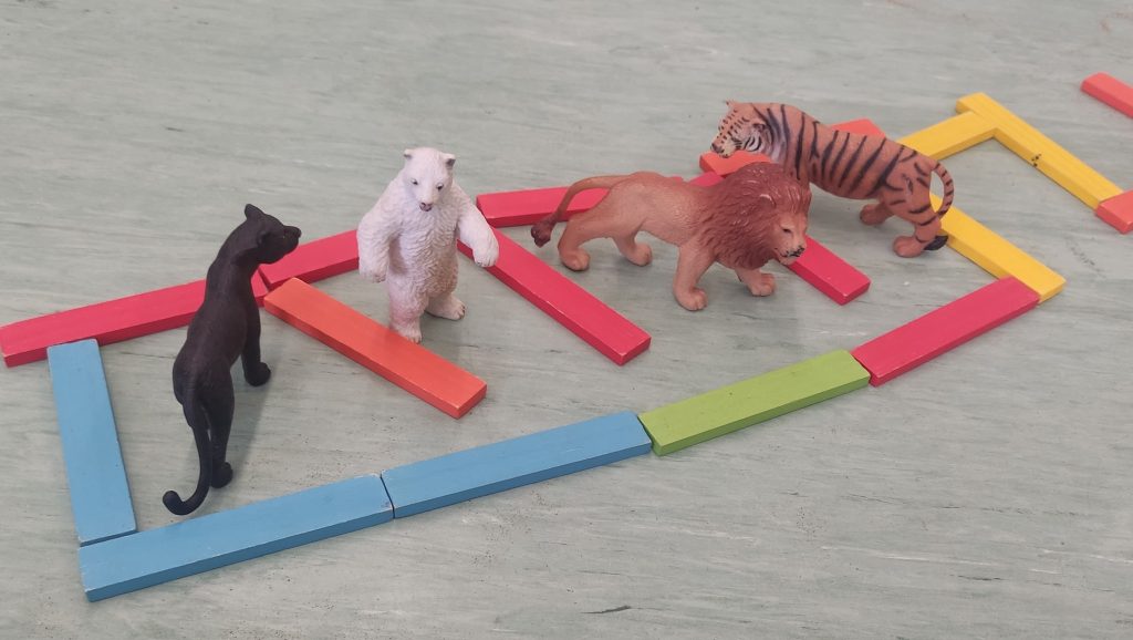 Amb aquest joc, volem fomentar la cooperació entre infants per compartir joc, ampliem vocabulari, treballem la imaginació i creativitat, a part d’aprendre conceptes nous: diferents animals segons on viuen, classifiquem animals segons la seva alimentació, la importància de circular bé amb cotxe per la ciutat…