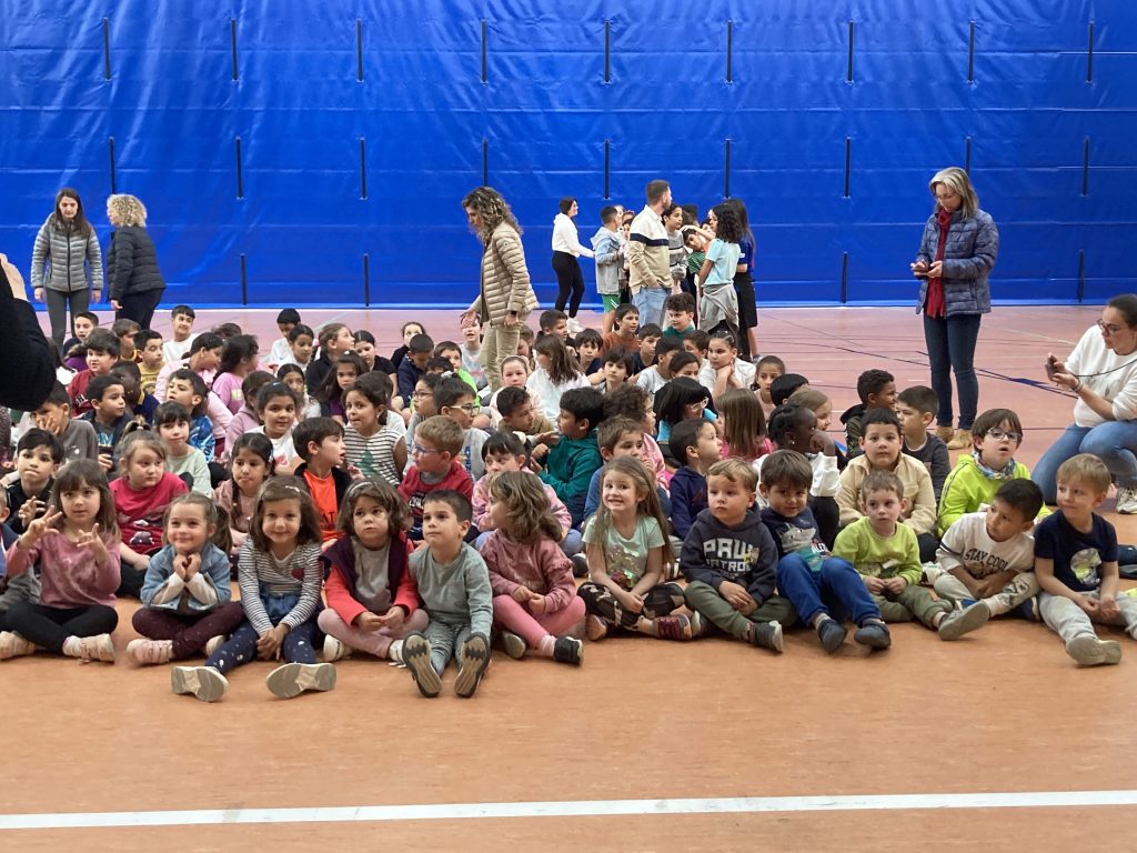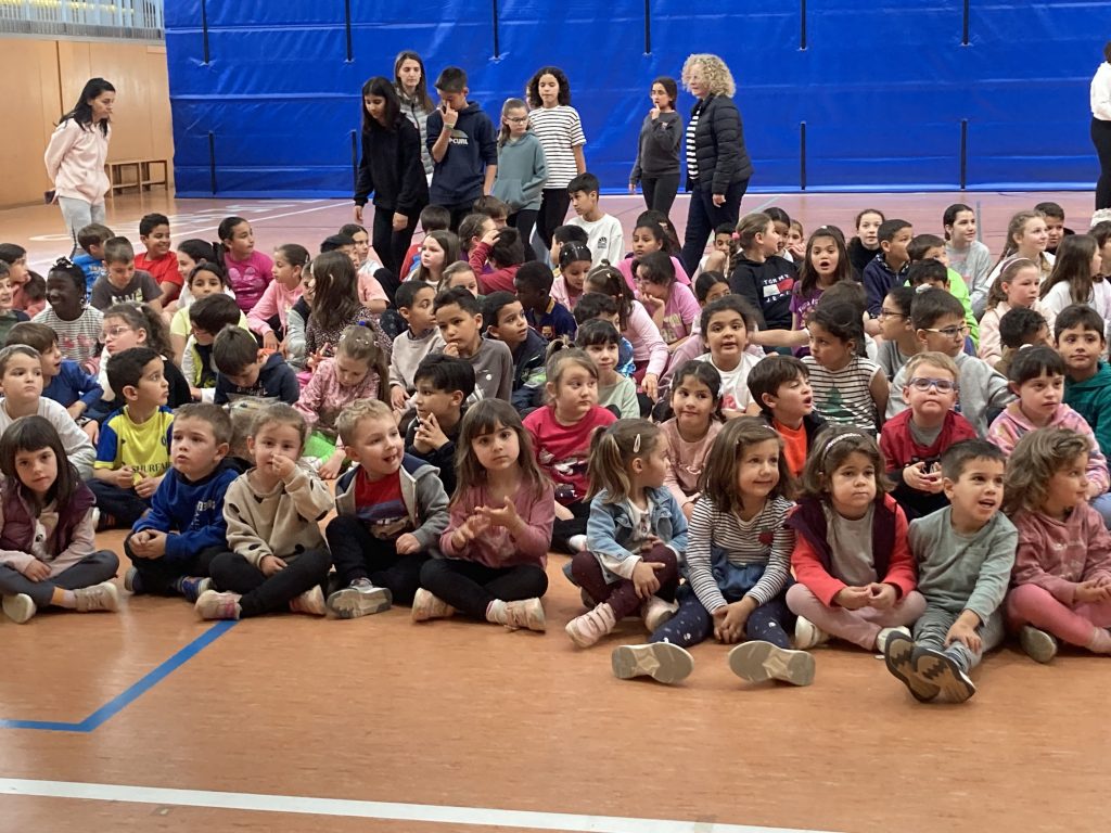 Vam anar fins al pavelló municipal i ens vam posar el casc i el vestit d’astronauta imaginaris per iniciar el nostre viatge a l’espai.
