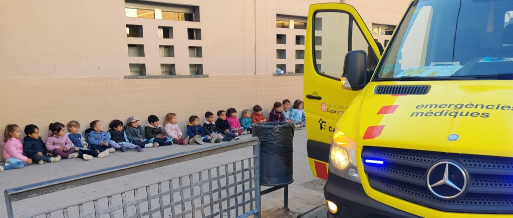 Avui, aprofitant que la tieta de la Cloe d’I4 ha vingut a explicar el funcionament de les ambulàncies a la seva classe, I3 hem aprofitat per veure com és una ambulància per dins i veure quins sons fan.