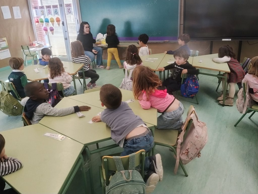 Avui hem fet un dia diferent, per celebrar que acabem el segon trimestre: al matí hem anat a passejar pel mercat del poble, hem observat els arbres fruiters i hem acabat el matí, jugant i esmorzar a una plaça del poble.