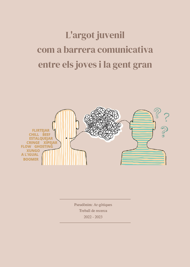 El llenguatge juvenil ha evolucionat ràpidament al llarg de les últimes dècades; en especial, durant els últims anys i, sobretot, a partir de l’entrada de les noves tecnologies. Aquesta varietat lingüística sempre ha estat caracteritzada per contenir paraules i expressions pròpies que podien, de manera lleu, dificultar la comunicació intergeneracional. La realitat que avui vivim és radicalment diferent, sembla que, per primera vegada en la història del català, l’argot juvenil estigui creant una barrera comunicativa amb les generacions anteriors i, per això, ens proposem com a objectiu principal estudiar aquesta trava. Consegüentment, ens plantegem com a hipòtesi si, en un futur, el fet de no conviure en un mateix cercle comunicatiu i social podria suposar un distanciament entre els joves i la gent gran, fet que culminaria amb una baixa comprensió i que podria afectar la relació entre ambdues generacions.