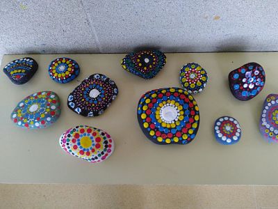 Per desenvolupar la creativitat, res millor pels meus estimats alumnes que treballar el color i la llum a través de pedres, decorades amb mandalas de colors molt brillants pintats sobre ells per omplir la llar de llum. Es poden posar a la oficina, la tauleta de nit de la teva habitació, a la prestatgeria de la sala d’estar… posa’ls allà on vulguis que donaràs un toc d’alegria, salut i vida a la teva llar.