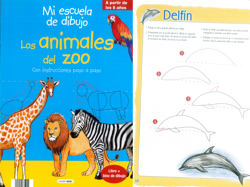 Gràcies a la Mar E. vam aprendre a dibuixar un dofí. Ella ens va portar el llibre titulat Mi escuela de dibujo. Los animales del zoo con instrucciones paso a paso i seguint aquestes instruccions ens van sortir molt bé els dofins que vam dibuixar!