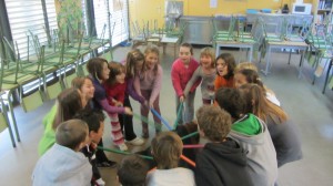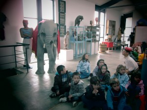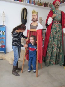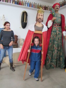 Un cop acabat el taller de màscares, varem pujar al pis de dalt i allà varem poder veure algunes peces molt interessants: gegants, capgrossos, animals, persones… Tot ens va semblar molt bonic i el que més ens va agradar van ser les mones que jugaven a cartes! Ens varen ensenyar com es porta un capgros i l´Ares en va poder provar un!