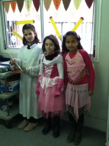 Avui tothom ha vingut disfressat a l´escola. Quina patxoca que feien les nenes de 3r!