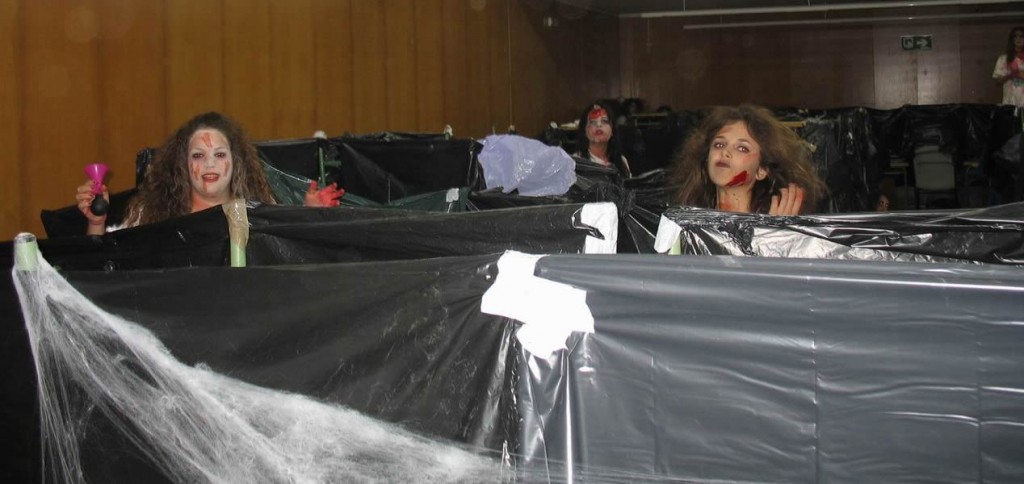 El dia 28 d’octubre vam celebrar la castanyada a l’institut. Com cada any, des de ja en fa molts no hi va faltar el “ Túnel del terror”, una veritable obra d’art de l’enginyeria moderna que darrerament l’alumnat de 4t munta a la Sala d’actes amb gran entusiasme i dedicació. Després ve la caracterització de l’alumnat que ha de provocar la por al sempre nombrosíssim públic que fa llargues cues per poder gaudir d’aquest moment únic: el retrobament amb les pors ancestrals. Per descomptat que tampoc hi van faltar els efectes acústics, terribles. Al final del recorregut sorties a la llum enlluernadora del dia ben sacsejat, sord i cec; això sí, els alumnes s’havien desfogat a gust, ja que els crits que proferien mentre recorrien a les palpentes el túnel eren esgarrifosos. Per poder visualitzar les altres fotos del túnel has d’entrar al compte de l’institut.