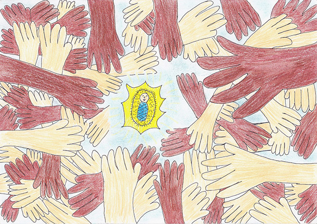 Material: fer el muralal en una cartolina gran del color que vulguis.