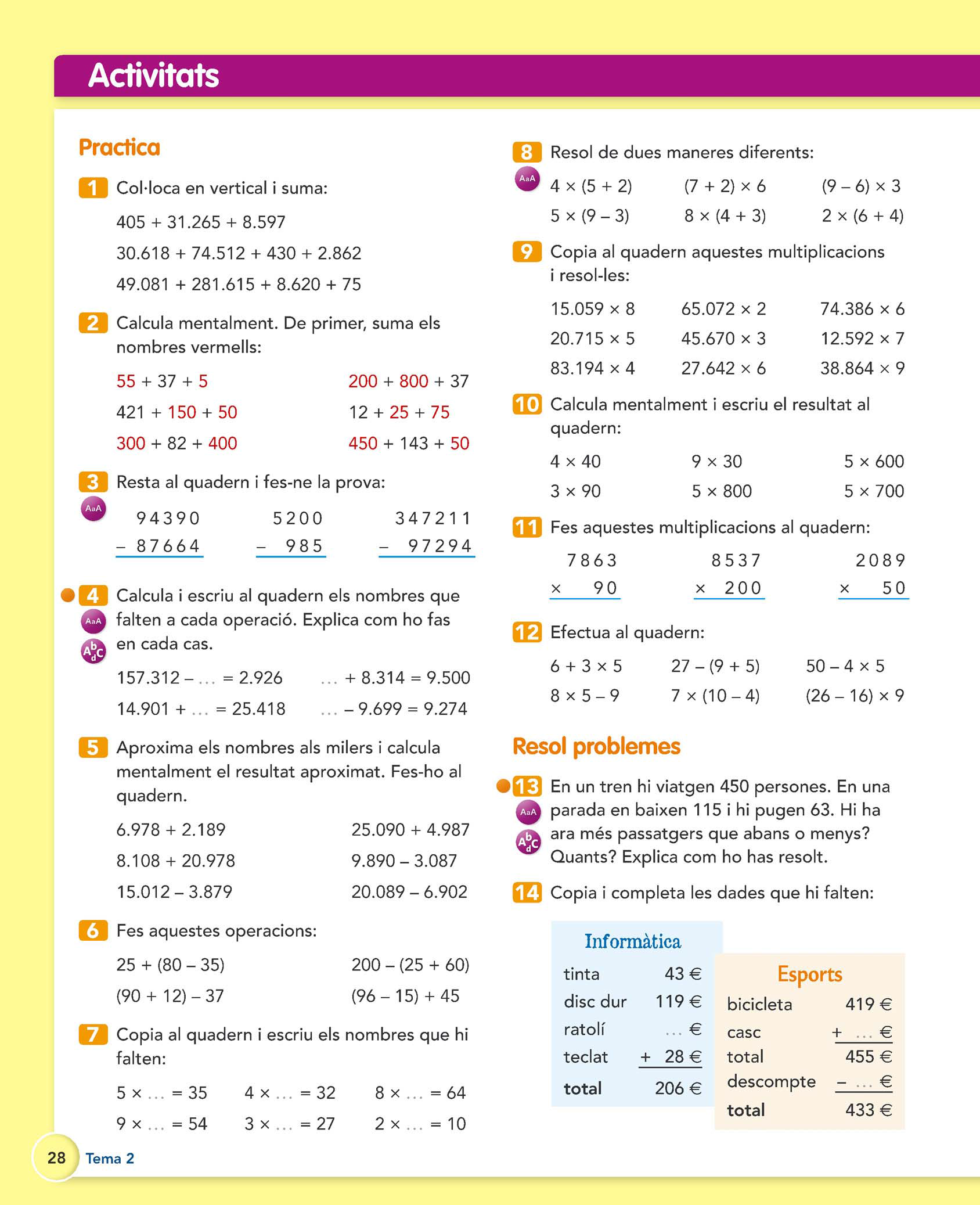Practica:multiplicar per una xifra , multiplicar por dos i tres xifres , multiplicar per zeros intermedis,