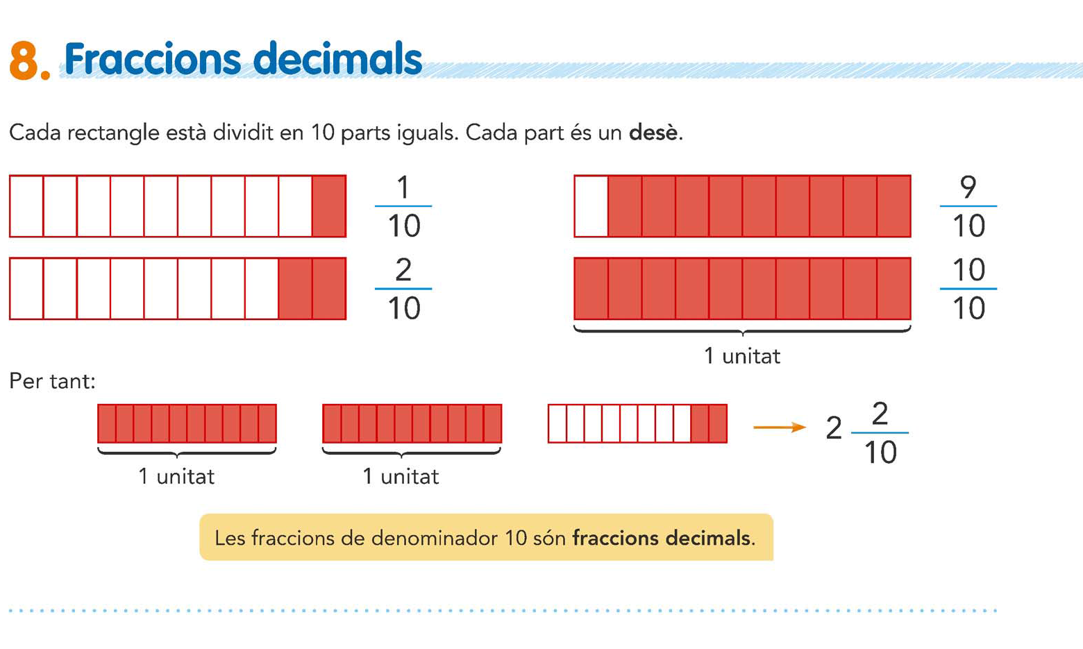 Del meu pastís d’aniversari n’hem menjat 2/10 els meus pares, 3/10 els meus cosins, 1/10 els meus avis, 4/10 els meus germans. M’ha quedat pastís per a mi?