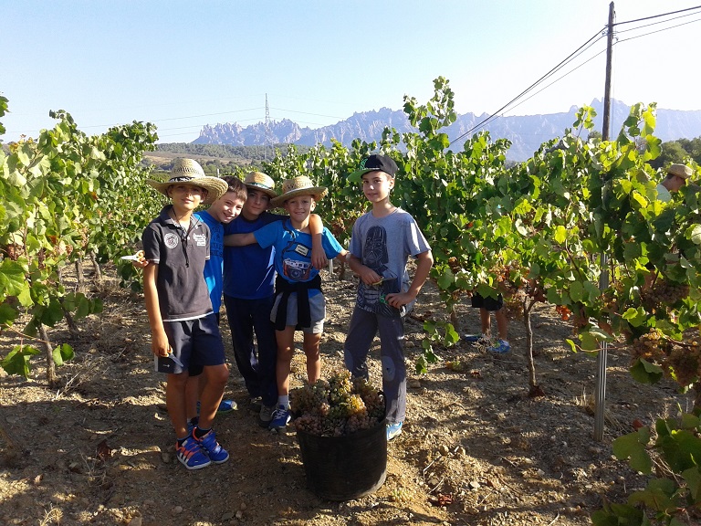 Tots els alumnes de l’escola aquest primer mes de curs treballem la verema. Nosaltres som els encarregats d’anar al camp a collir el raïm, en Jordi ens ajuda amb el cotxe a traslladar-lo fins a l’escola. Una vegada allí al pati tots els alumnes per cursos ens hem descalçat i premsat el raïm. Realment ha sigut una experiència diferent!!!